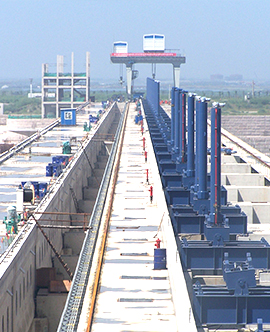 公司專業(yè)生產(chǎn)的各類平面、弧型閘門,各類卷揚、門式、移動式啟閉機,各類清污機、攔污柵、升船機、壓力鋼管、錐形閥等超大型、大型水工金屬結(jié)構(gòu)件和各類起重機遠銷全國26個省、市、自治區(qū),并出口到16個國家和地區(qū),廣泛應用于全國重點工程建設,如長江三峽永久性船閘工程、淮河蚌埠閘擴建工程、浙江溫州珊溪水利樞紐工程、四川岷江紫坪鋪水利樞紐工程、浙江省分水江水利樞紐工程、中國河口第一大閘曹娥江攔河大閘和港口、船舶制造企業(yè)等。